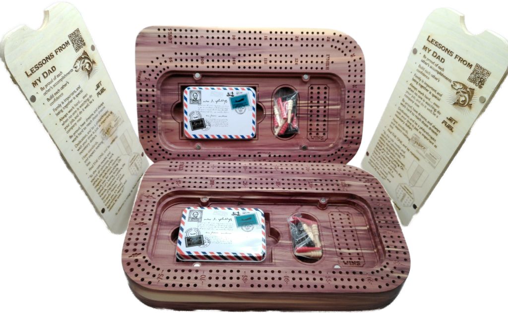 - Materials: Cedar cribbage boards with maple magnetic lids